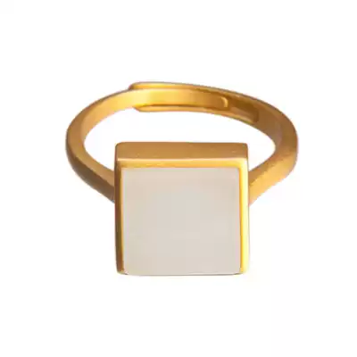 Look at the Mountain) Wanfang) Hetian white jade ring female adopter sterling silver jewelry Zen Chinese ancient style ring on the new