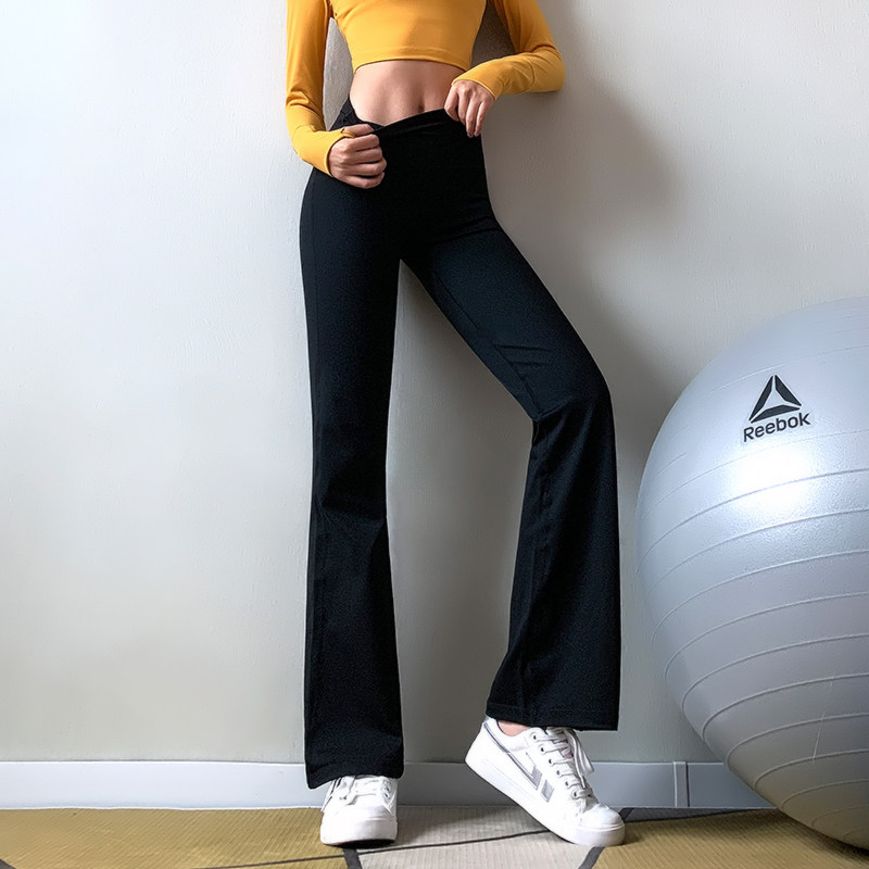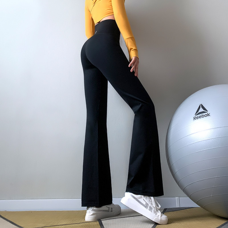 Fitness Girl Net Red Broadleg High Waist Lifting Hip Movement Pants Tight Fit Running Speed Dry Elastic Yoga Long Pants Horn Pants