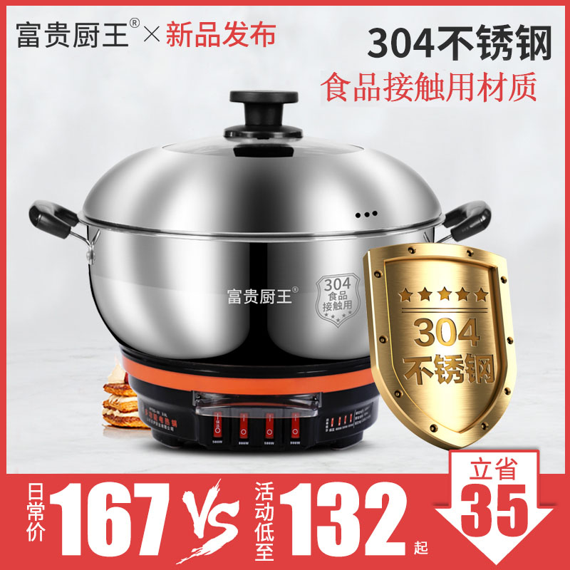 304 stainless steel electric boiler Home Multi-functional hot pot electric frying pan fried and fried in frying and frying integrated electric pan