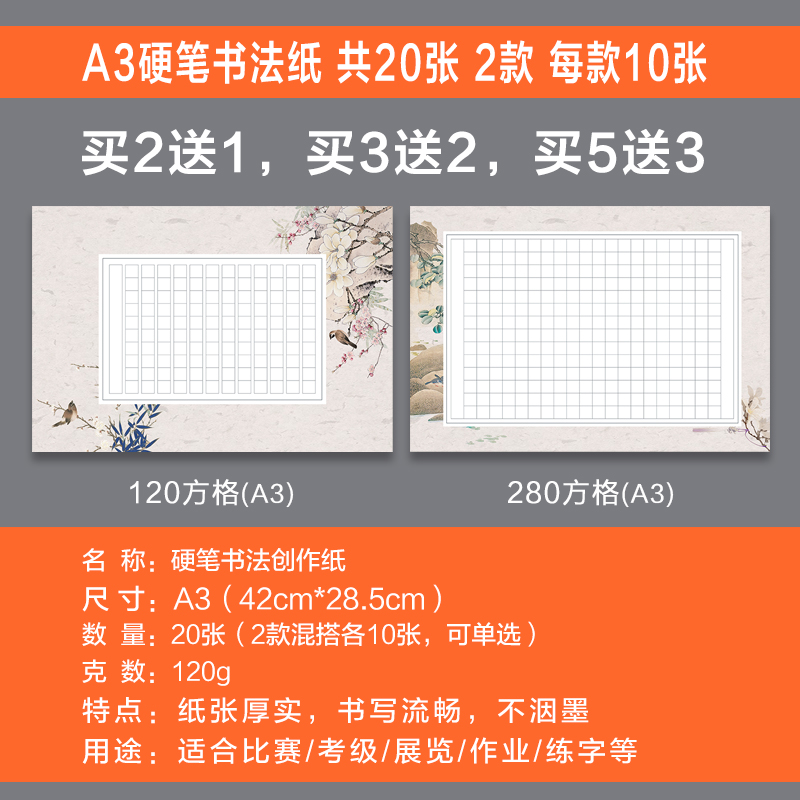 A3 hard pen calligraphy paper 280 square 120 square mixed