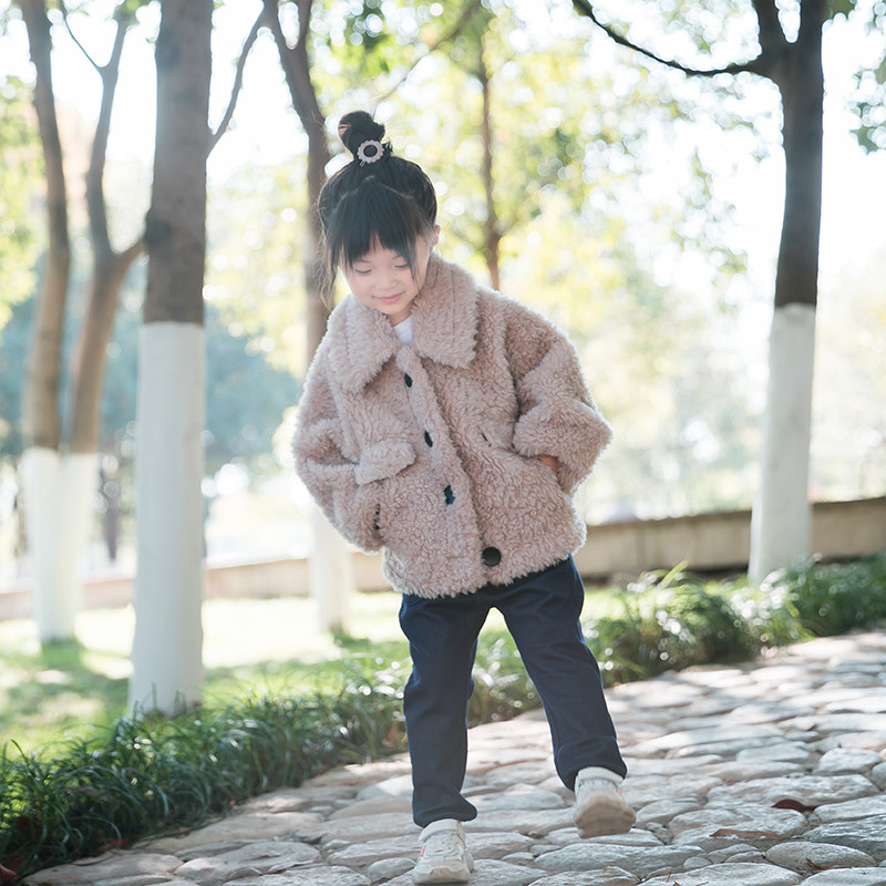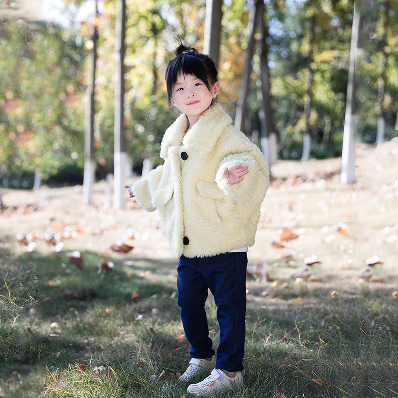 Girls' wool coat winter style sheep shearling fur one Australian wool foreign style children's grain velvet fur coat