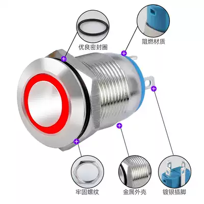 12mm metal button switch Waterproof ring self-locking small round start and stop button with light