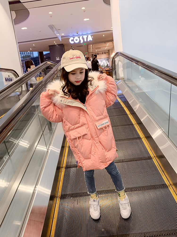 Girls' cotton-padded winter clothes 2022 new Korean version of medium and large children's clothing coat girls foreign-style cotton-padded clothes mid-length cotton-padded jacket