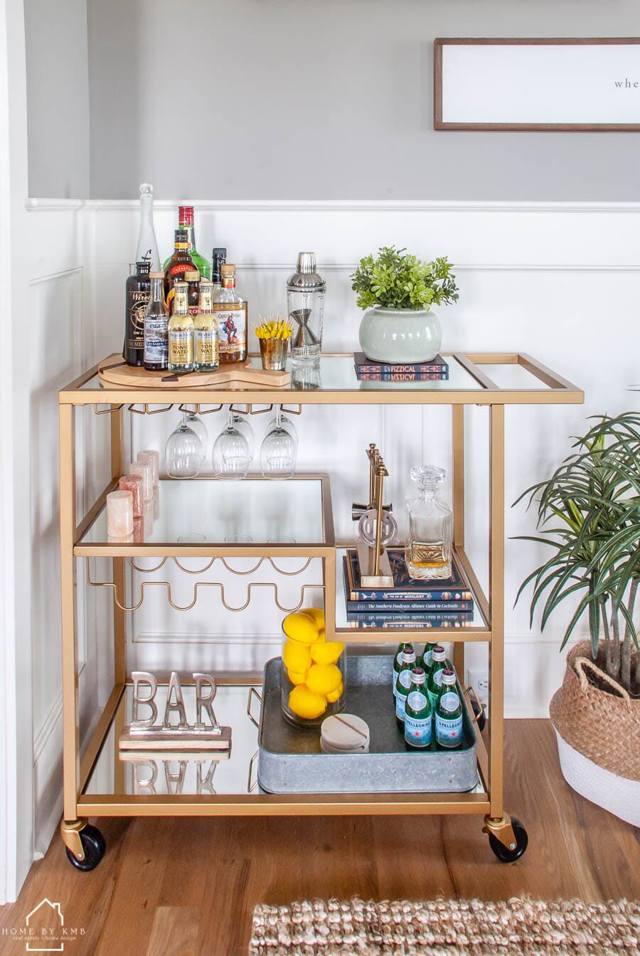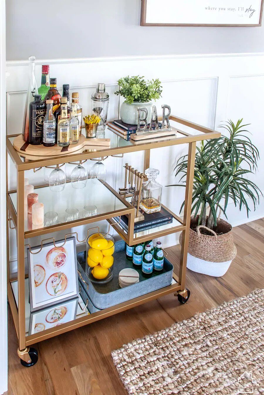 Golden dining car Metal tempered glass trolley Mobile villa food delivery Silent bar Steakhouse Goblet car
