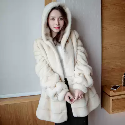 2021 Haining winter new imported mink coat whole mink women long version hooded mink fashion fur coat