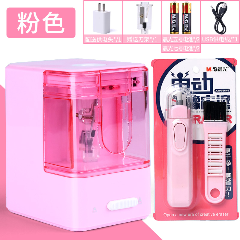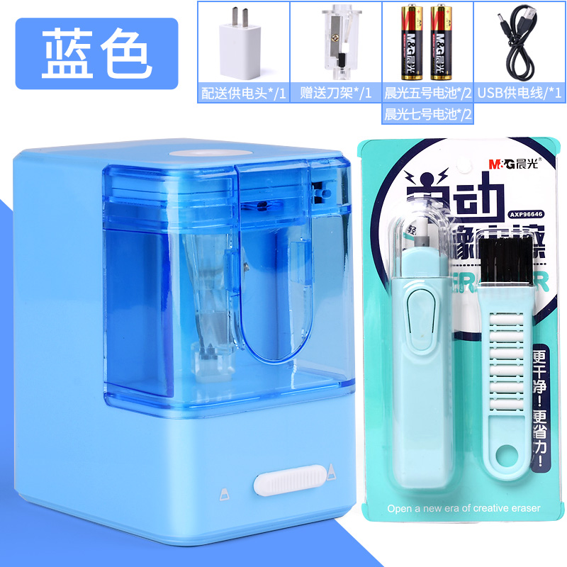 Chenguang electric pencil sharpener Pencil sharpener Children's primary school students under pressure automatic multi-function planer pencil machine Small portable pen sharpener rotary pen knife School supplies set three-piece stationery