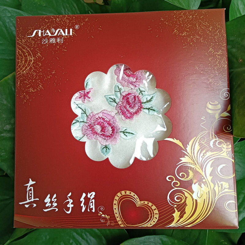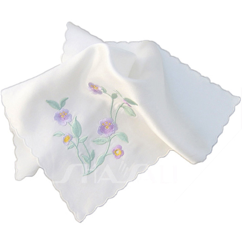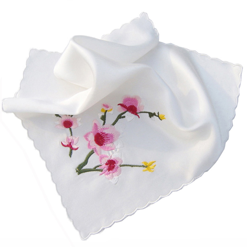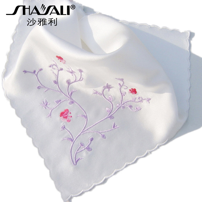 Collection small fresh mulberry silk embroidered handkerchief antique lady handkerchief crescent edge silk handkerchief