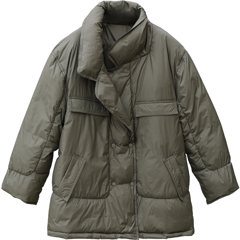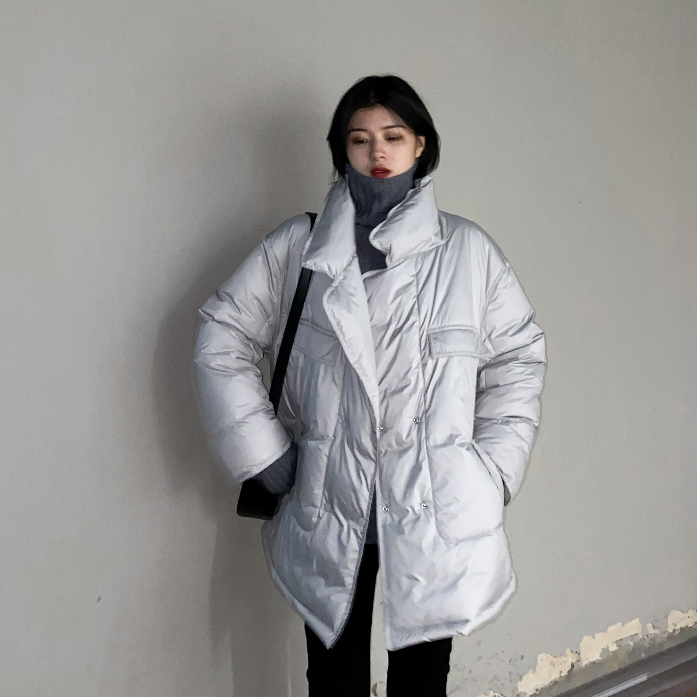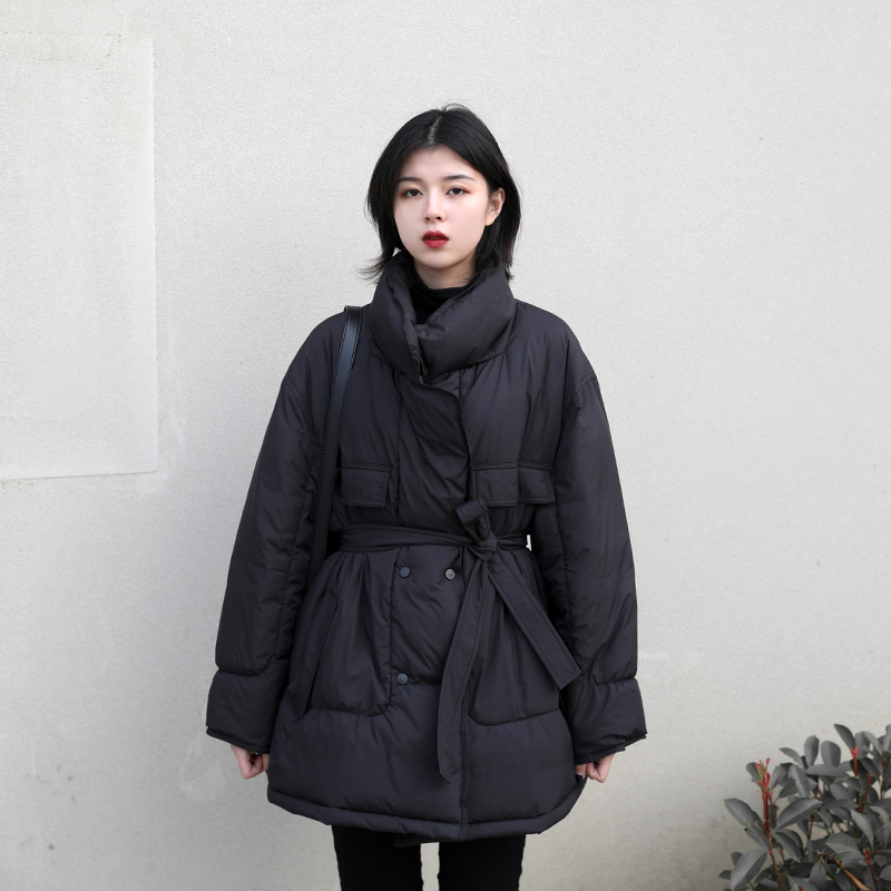 CHICVEN WARM LOOSE Lacing Up Two Wear 90 White Duck Suede Down Clothing Medium Long version Collar Jacket Lady Winter