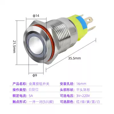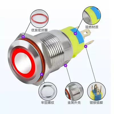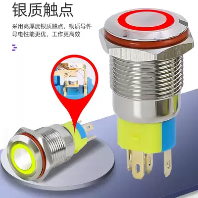 16mm metal button switch flat head ring light self-reset computer modified car one-button start ignition waterproof