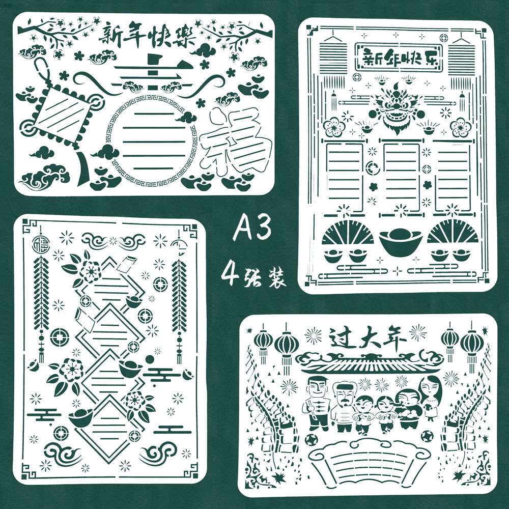 A3 Hand Transcript of Stencil Hollowed-out God Instrumental Elementary School Children's New Year's New Year Happy New Year's Happy Hand Transcript of the Festive Tabloid Suit