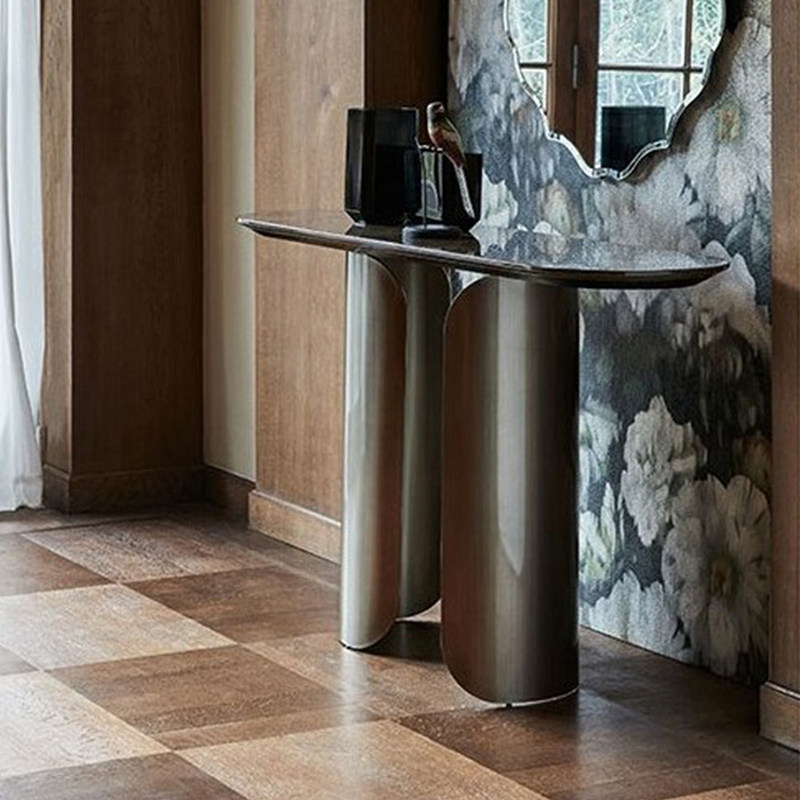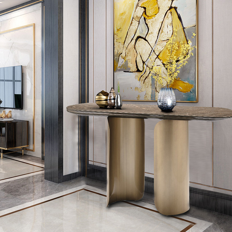 Modern light luxury marble porch table stainless steel wall side table designer entry corridor entry door long case