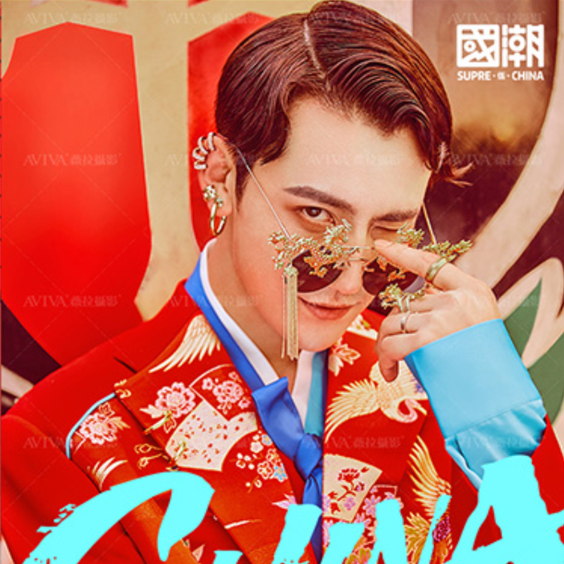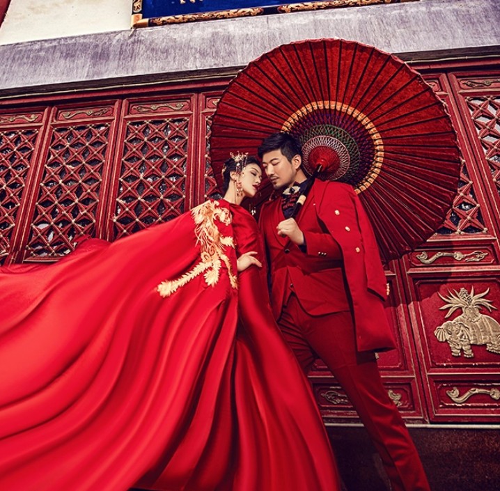 Guochao Pair Dragon Glasses Oversized Red Oil Paper Umbrella Black Good Sunglasses Chain Red Fan China A Gold Binoculars a woman's red head decorated with male and female tides costumes