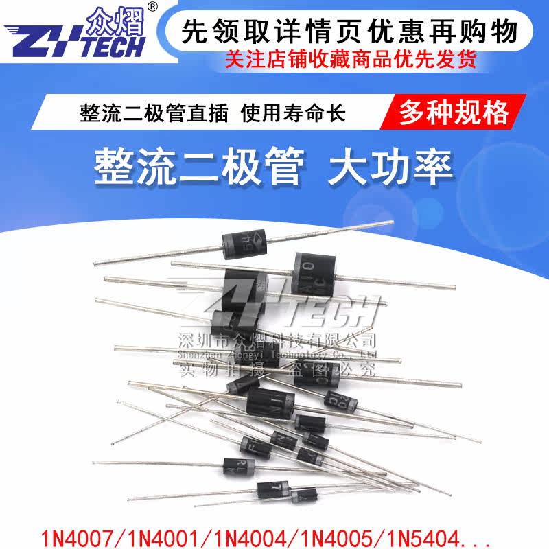 1N4007 10A10 1N5408 1N5819 1N4001 5822 rectifier diode IN4007 straight plug