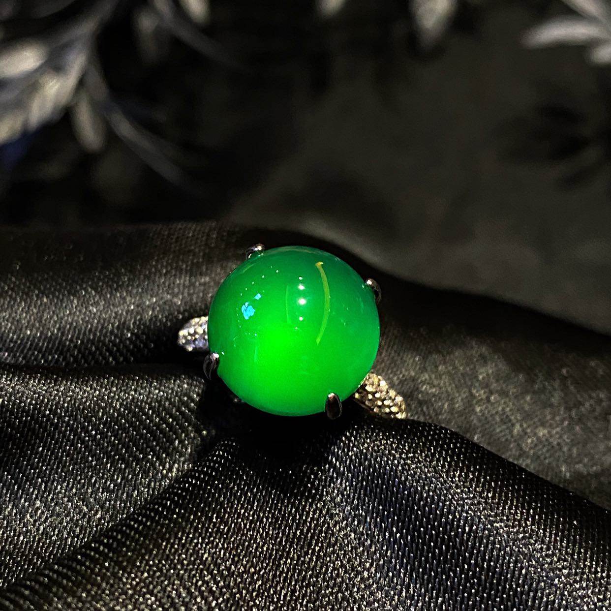 VISING jewelry original design 925 sterling silver platinum inlay Brazilian green chalcedony ring comparable to Jade send