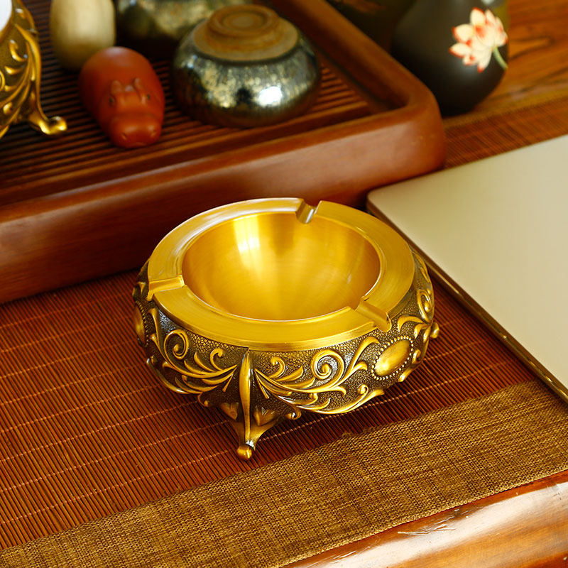 Creative Eurostyle Pure Copper Cigarette Ashtray Swing Piece Home Living Room Office Pure Bronze Sculpture Flower Decoration Gift Furnishing