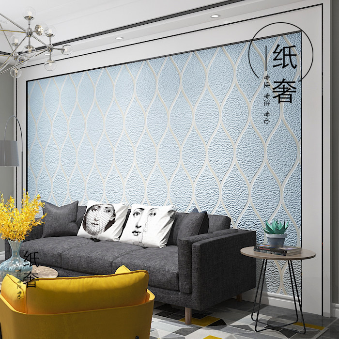 Nordic Water Corrugated Deer Deer Television Background Wallpaper Curve Strip Blue White Bar Bar Small Household Wallpaper