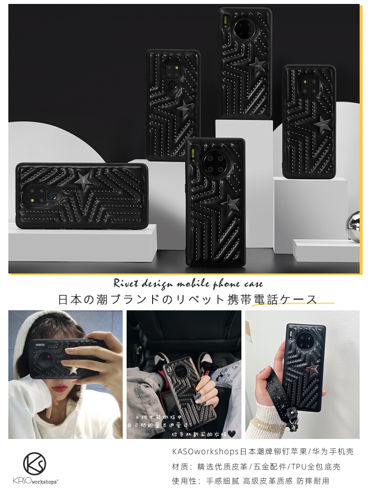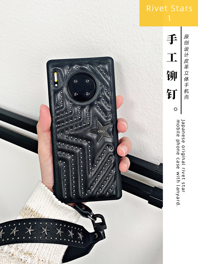 Rivet KASO leather suitable for Huawei mate30pro mobile phone shell lanyard Porsche RSP40 punk 20 soft 40