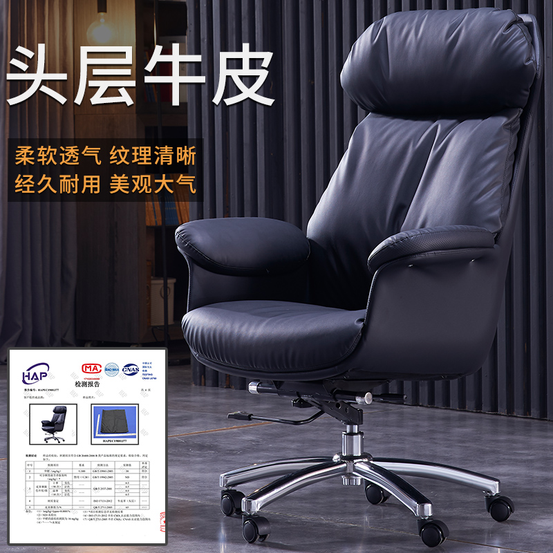 Genuine Leather Comfort Owner Chair Home Brief Book Room Chair Business Office Chair Light Lavish Computer Chair Bull Leather Big Class Chair
