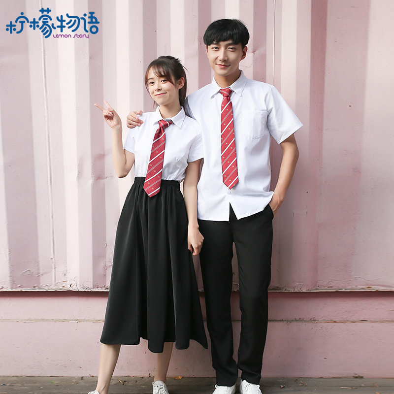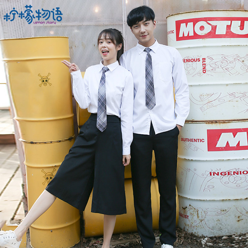 Women's white short-sleeved shirt wide-leg pants (with tie)Women's white long-sleeved shirt and wide-leg pants (with tie)Women's white short-sleeved shirt eight-petal skirt (with tie)Women's white long-sleeved shirt with eight-petal skirt (with tie)