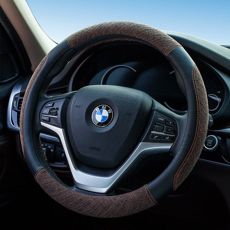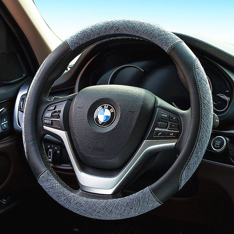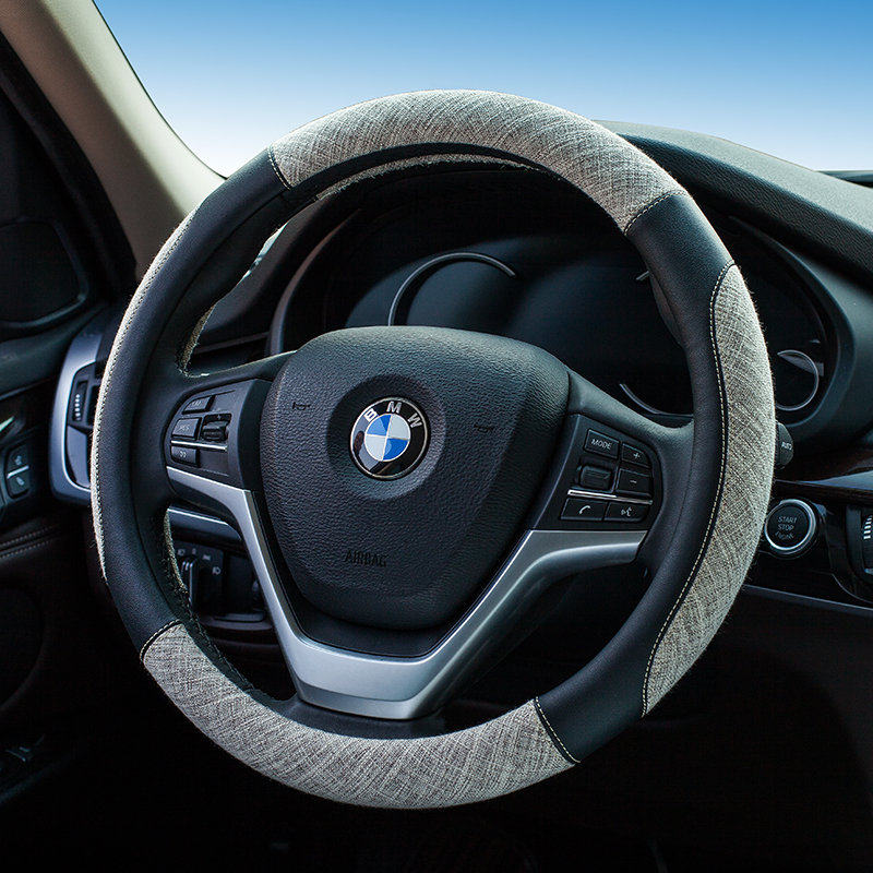 Ordinary Corn Kernel Ice Silk Beige CJ Carbon Fiber Linen Steering Wheel Cover Black CJ Linen Check Steering Wheel Cover- Black and White CJ Carbon Fiber Linen Steering Wheel Cover Gray CJ Linen