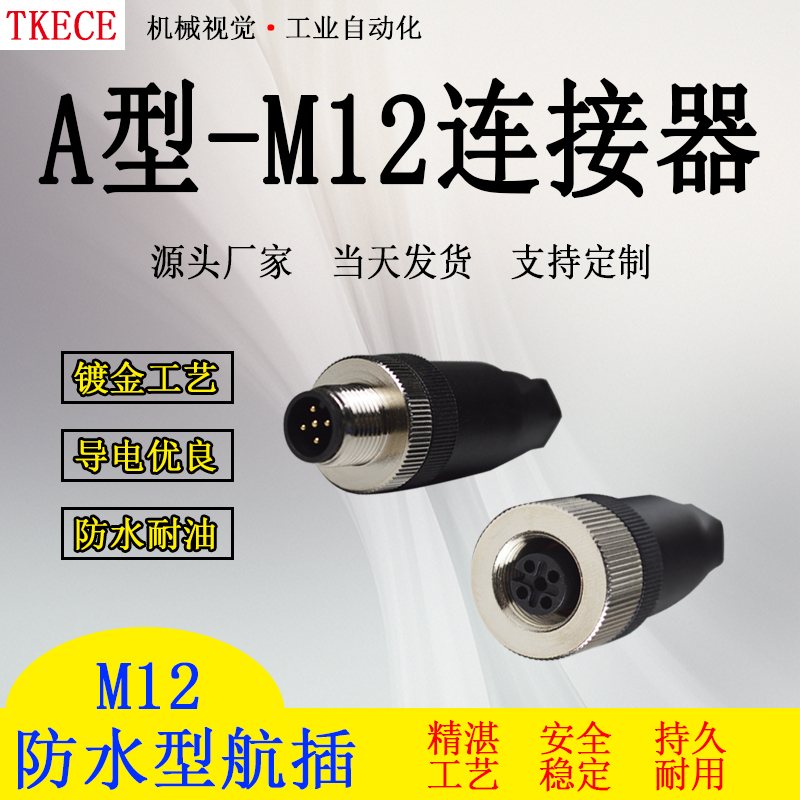 Type A M12 aviation plug waterproof connector 4 core 5 core 8 core plug-in sensor connector connector