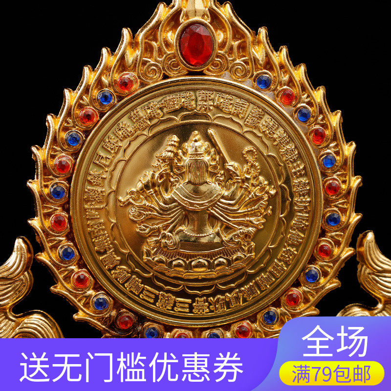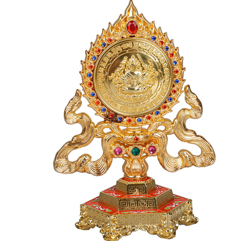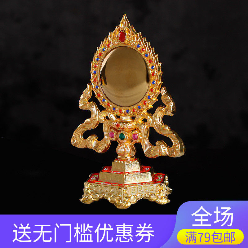 Tibetan Buddhist Tool Copper Alloy Gold Painting Listed Mirror Tantry of Tibetan Buddhist Masters