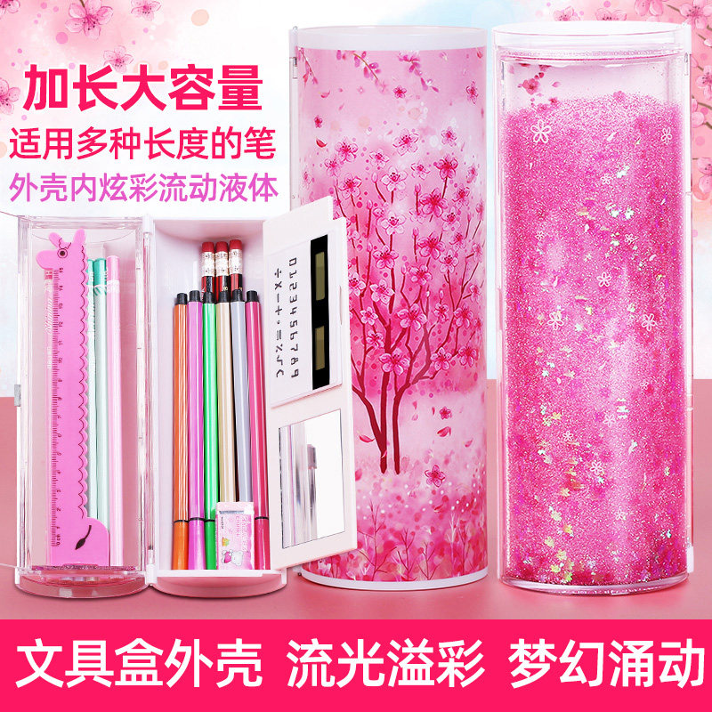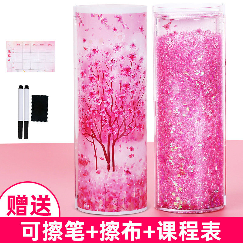 South China Book Incense Streaming Sand net Red Lead Pencil Case Elementary School Students Multifunction Korea Cute Pen Bag Round Creative Pencil Case Custom Constellation Starry Sky Cherry Blossom Transparent Anti-Fall Lead Pencil Case