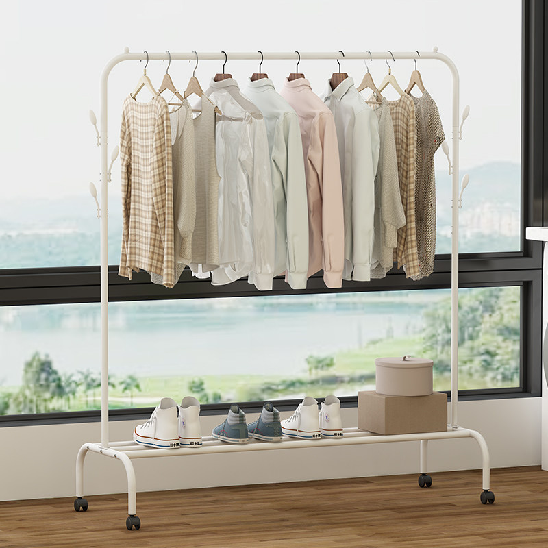 Simple clothes drying rack floor-to-ceiling household single-rod folding coat rack balcony drying rack bedroom cool hanging clothes rack