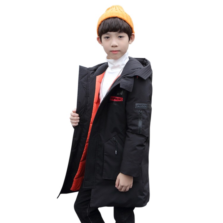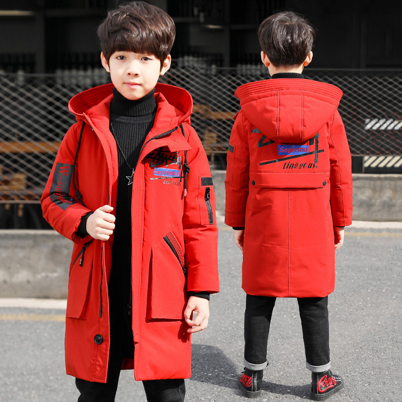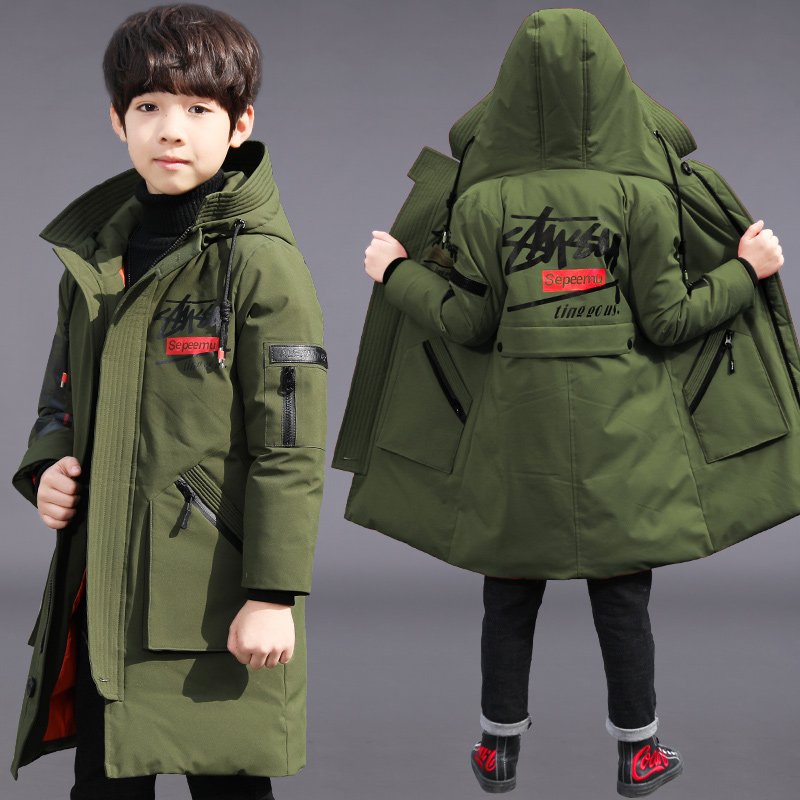Boy Cotton Clothing Tide Boy Children Foreign Pie Cotton Jersey 2021 New CUHK Fairy Korean Version Winter Clothing Long Version Thickened Jacket