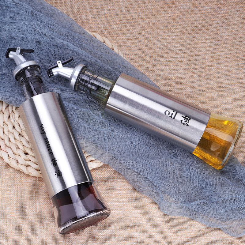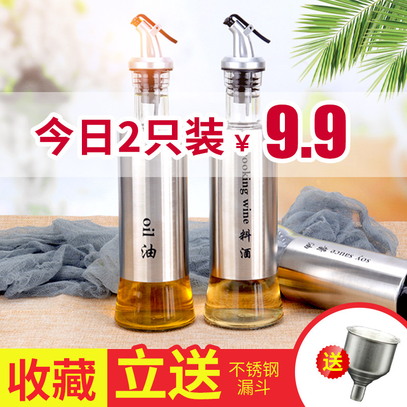 Oil Bottle Stainless Steel Oil Pot Home Kitchen Soy Sauce Vinegar Bottle Sauce Bottle Glass Small Oil Tank Suit Leakproof Combined Dress