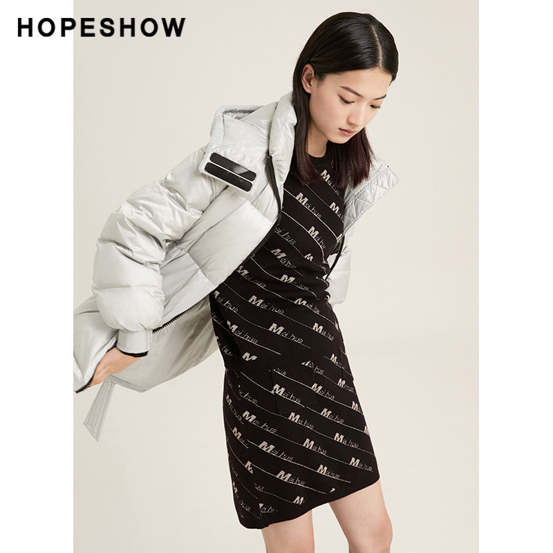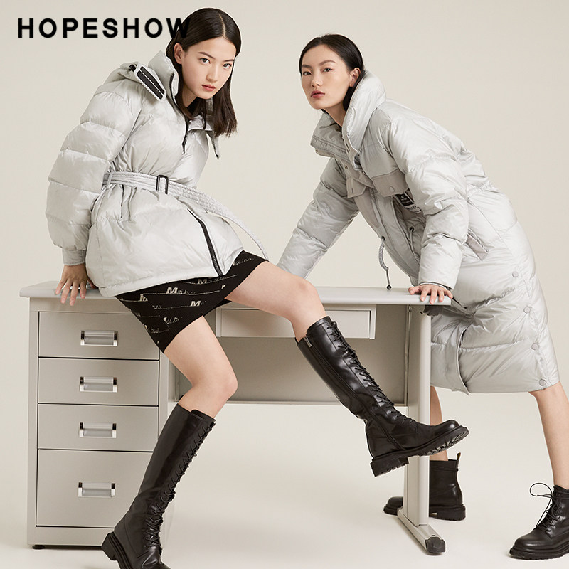 Red sleeve hopeshow down jacket women's winter new shiny large size hooded jacket