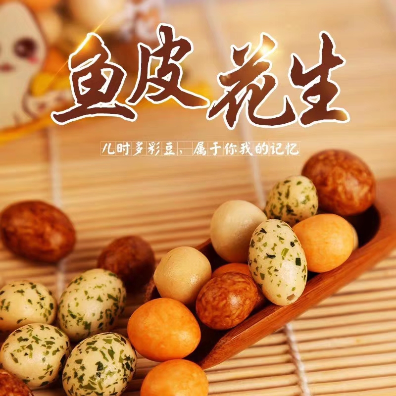 Small curry fish skin Peanut Beans Colorful multi-flavor peanut kernel wrap Fried Stock peanuts crisp and small snacks 308g * 2 cans