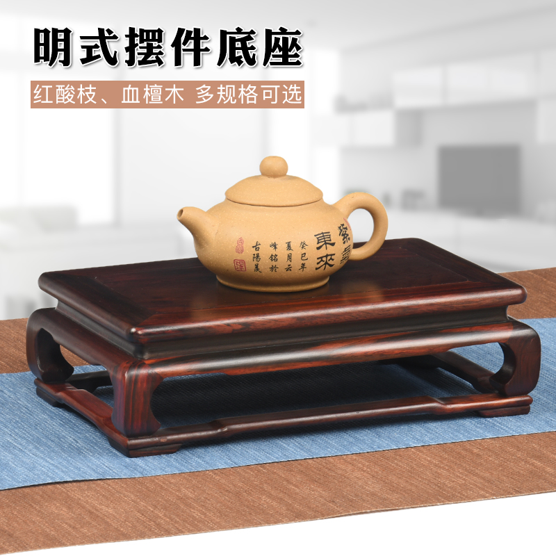 Red acid branch Ming style ornaments Buddha statue solid wood base Rectangular stone vase basin Purple Sand teapot cup Mahogany tray