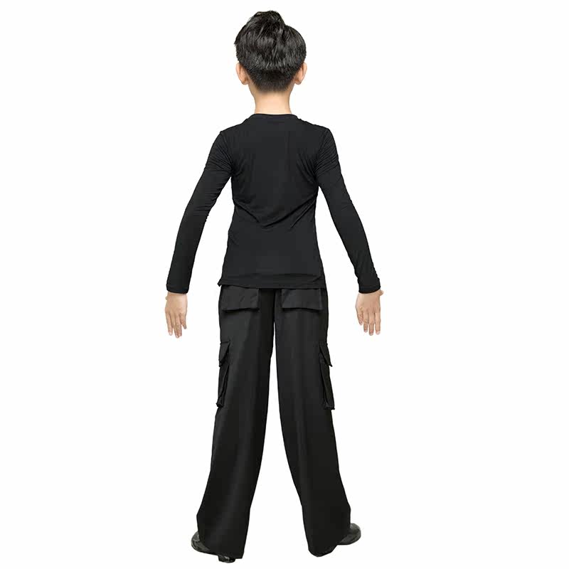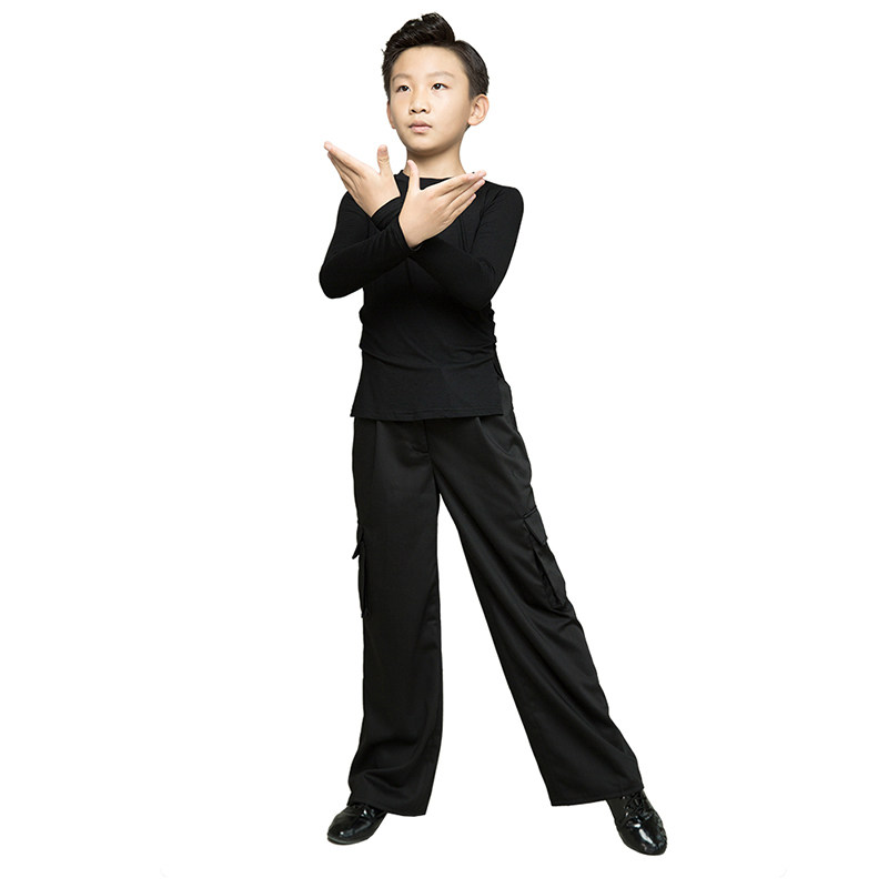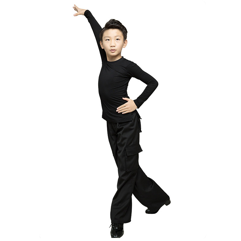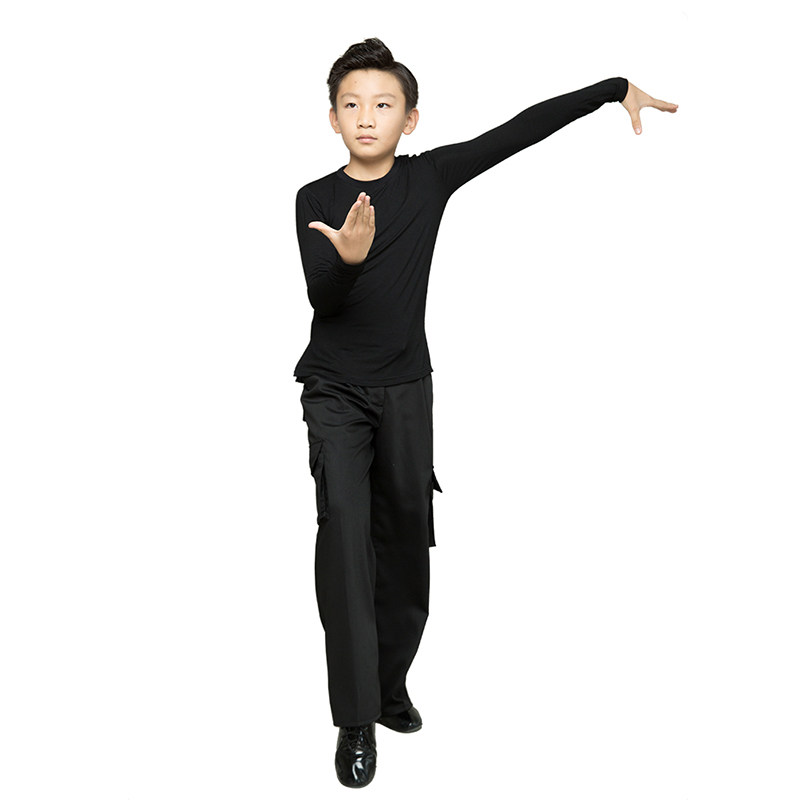 Young boys Latin dance training clothing performance clothing practice clothing long sleeve T-shirt wooden cotton side split spring and autumn winter