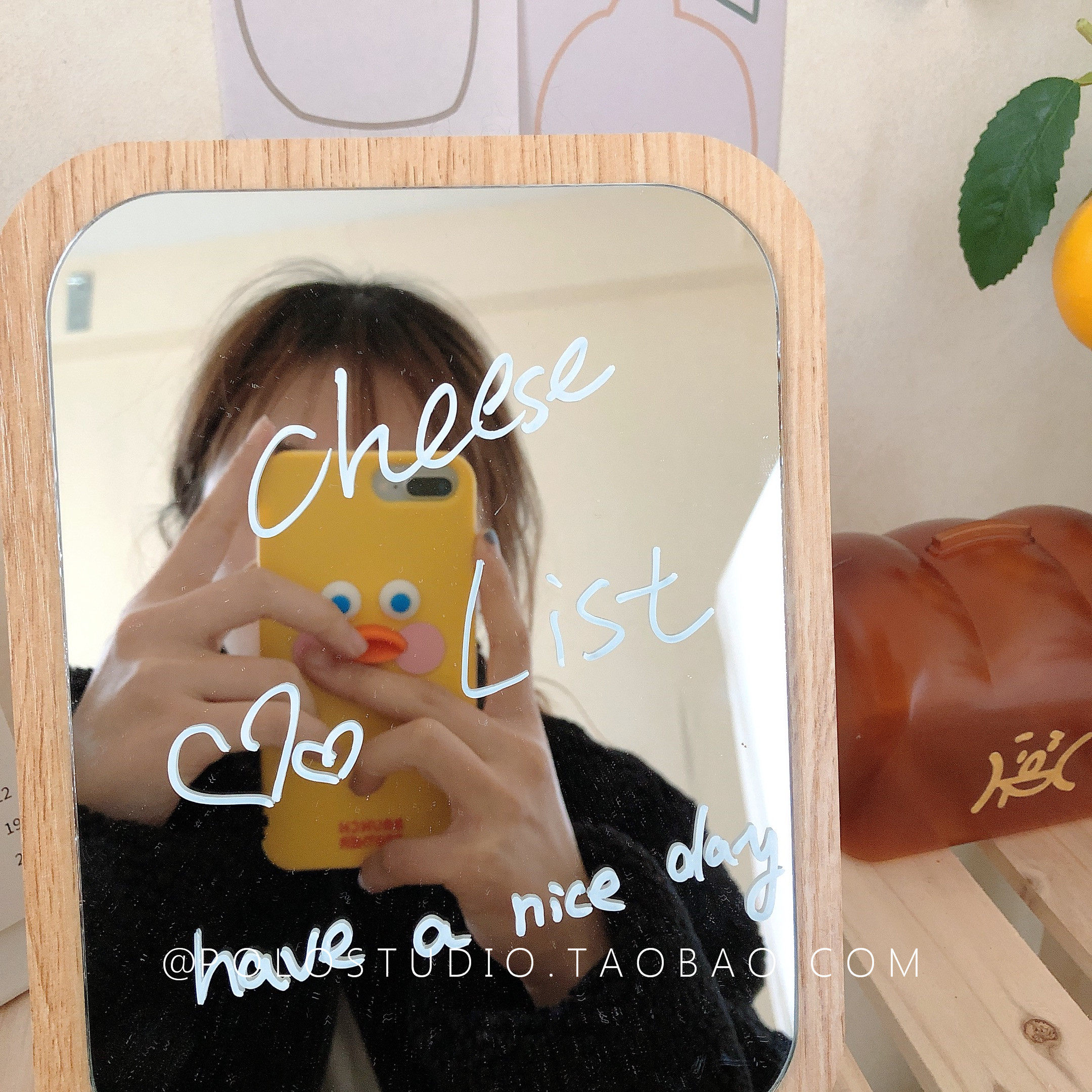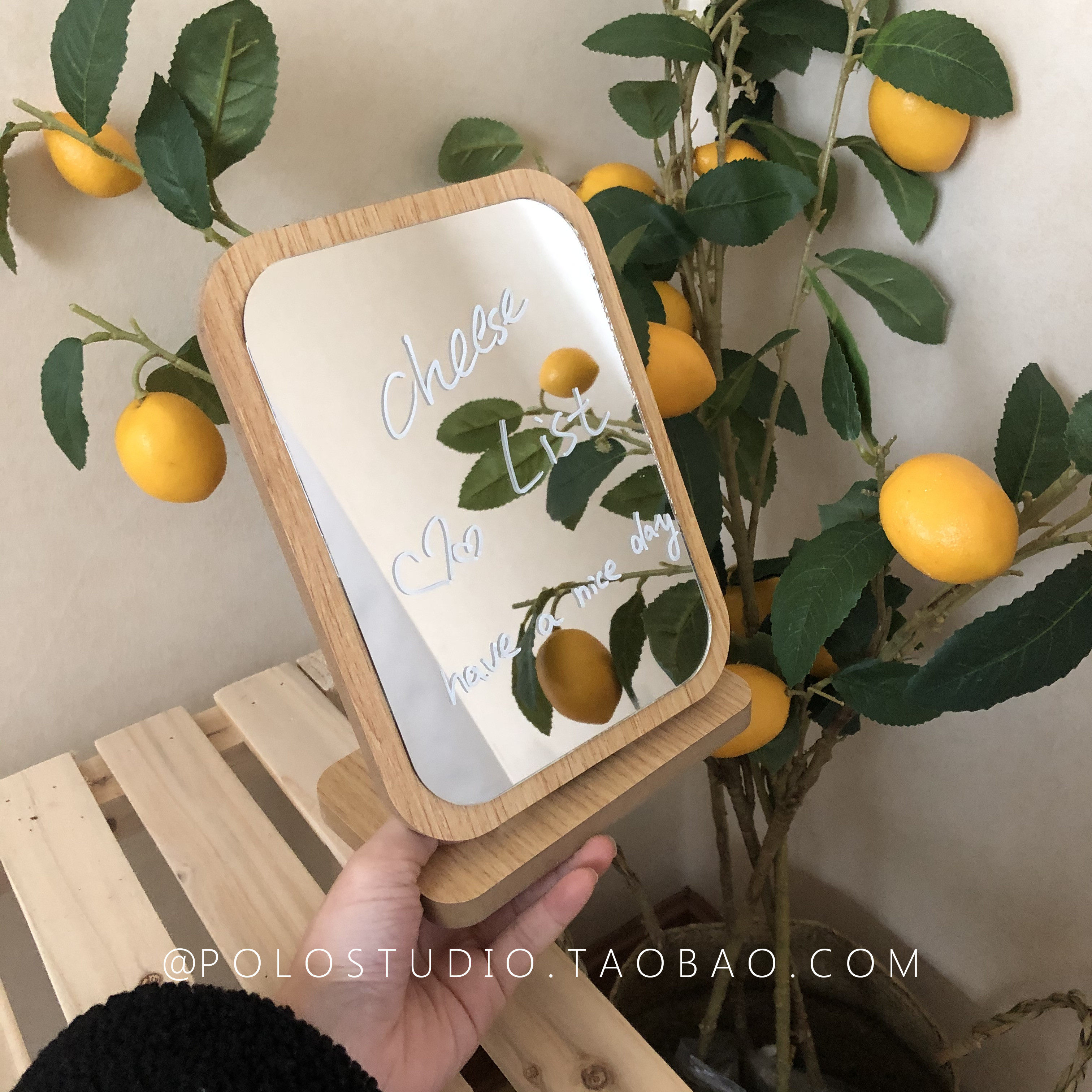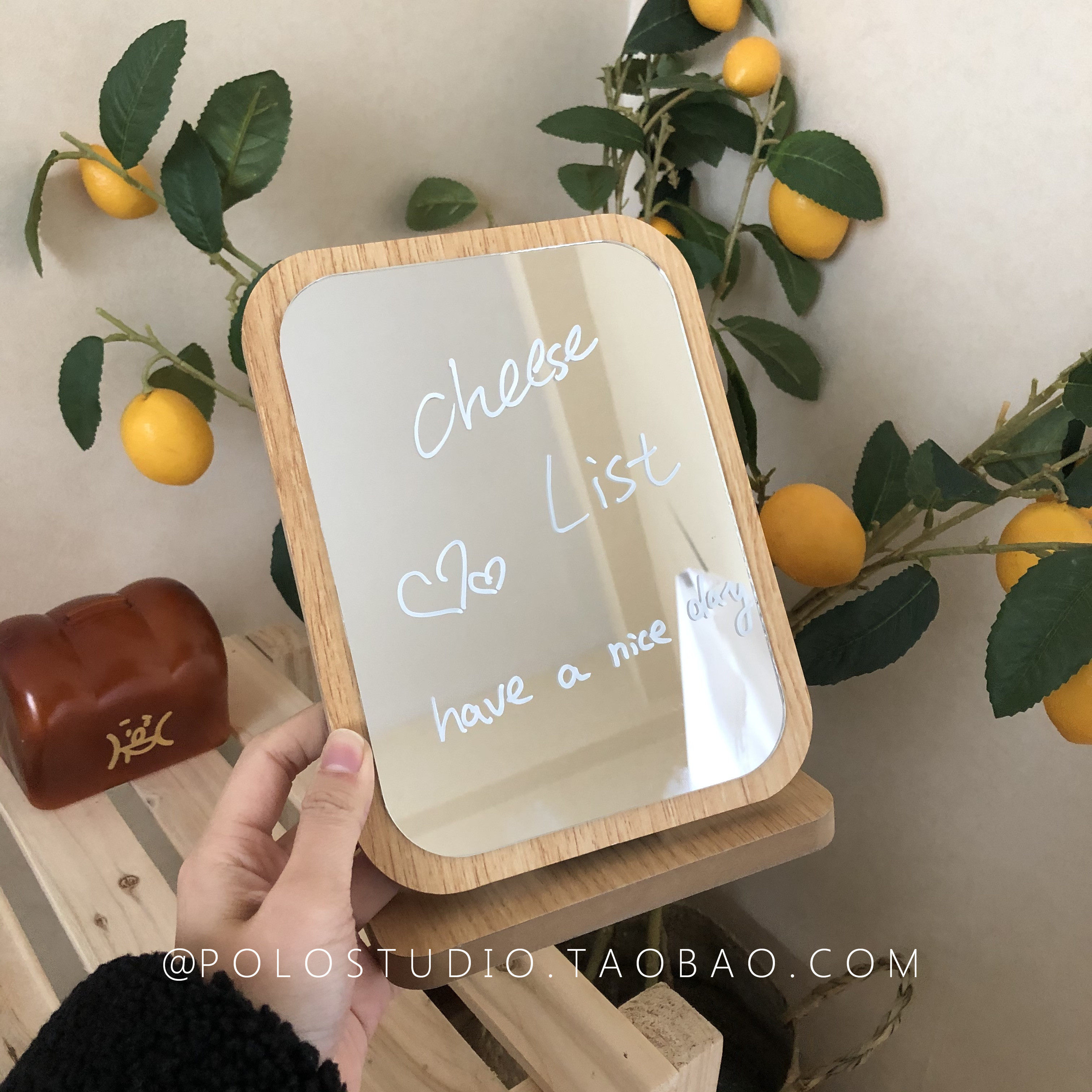 South Korean ins minimalist net red Wooden Portable Pendulum Table Mirror Makeup Mirror Cosmetic Mirror Cosmetic Mirror Send Macpen