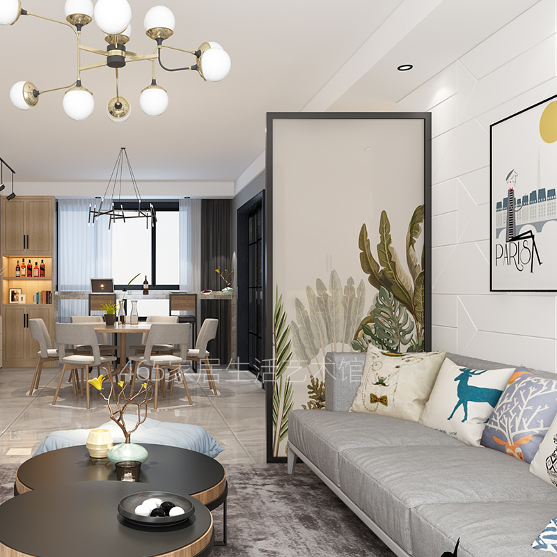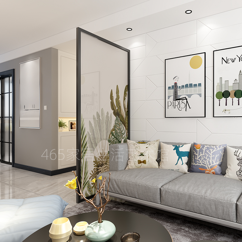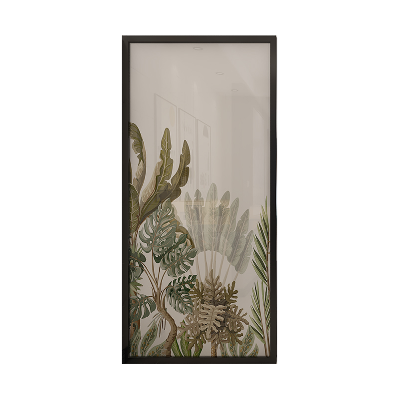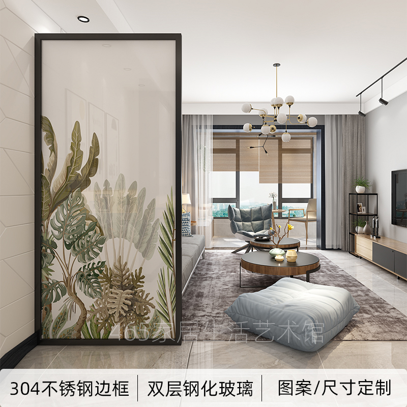 Art sandwich glass partition screen sliding door custom narrow frame Nordic simple modern shelter home feng shui