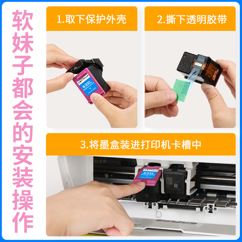 (Shunfeng) Color Pule compatible with HP63XL cartridges HP hp 2130 3630 3830 4520 4650 4650 3632 Inform machine Color black Large