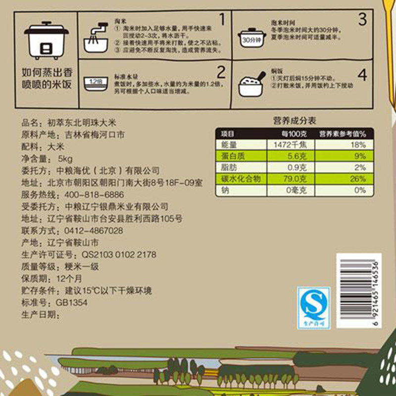 COFCO 2019 New Authentic Northeast Pearl Rice 20 catties fragrant rice round grain high-quality japonica rice 5kg*2 bags