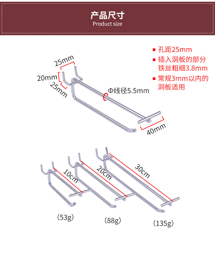 Promotion Hole Plate Double Wire Hook Hole Plate Hole Plate Super Market Shelving Hook Boutique Ornament Shop Plated Metal Hook