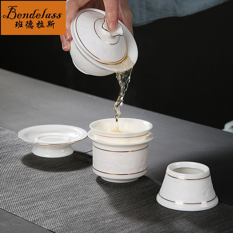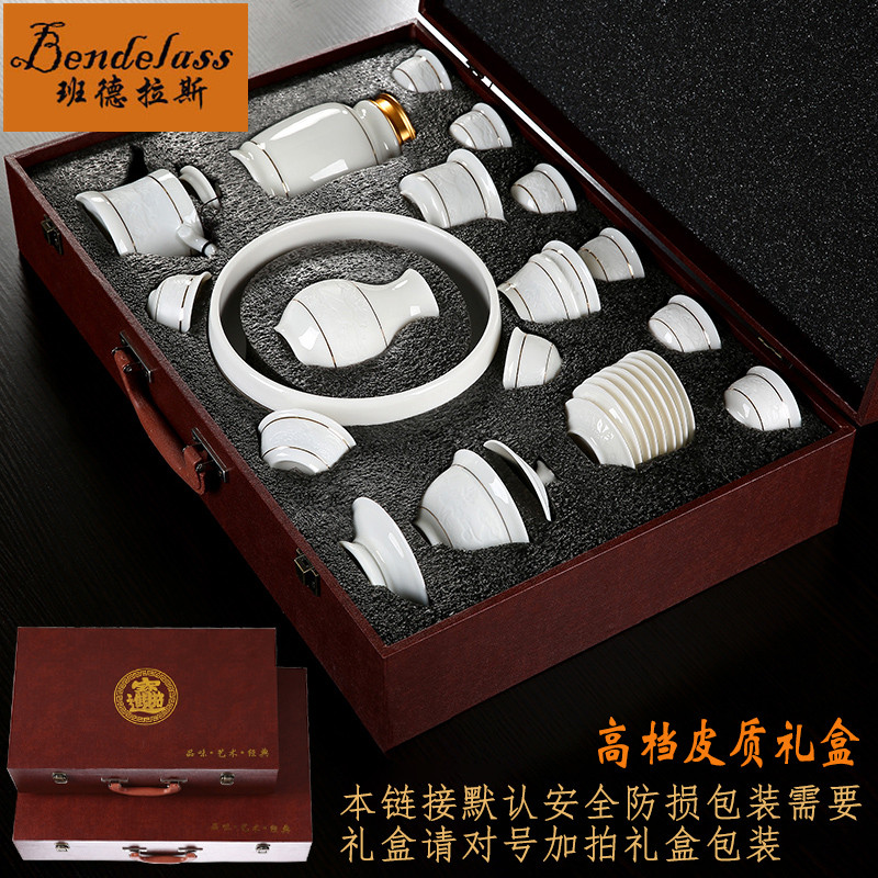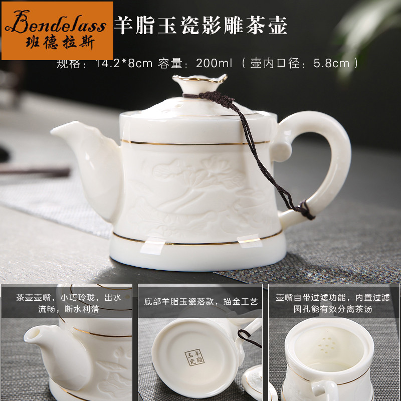 Banderas sheep fat Jade porcelain tea set White Porcelain Kung Fu Tea set Household set Jade porcelain teapot Teacup ceramics