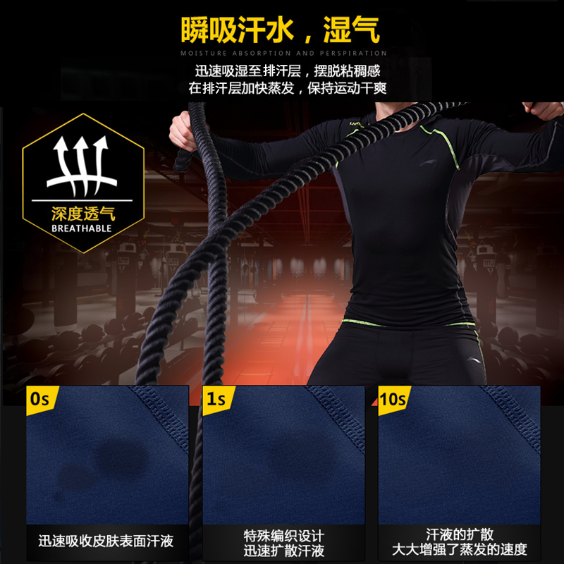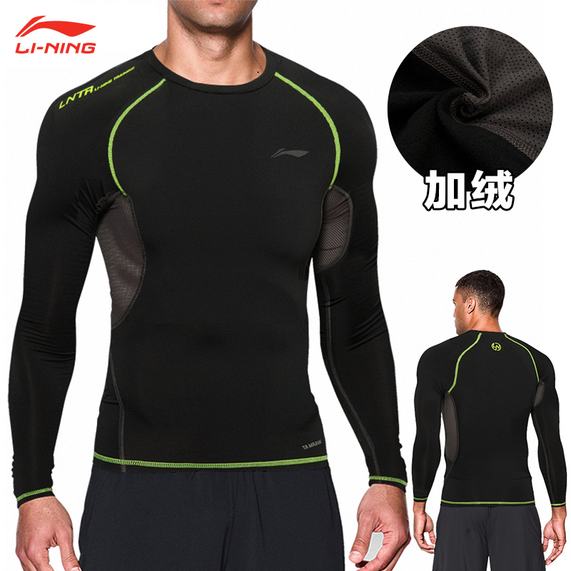 Li Ning tights men's sports long sleeve basketball sweat-absorbing pro football running training velvet compression fitness suit