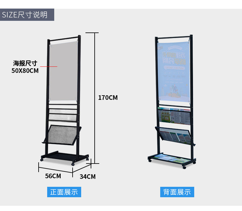 Explosive single-page picture album color page leaf display stand, vertical exhibition rack storage rack billit on the floor information stand