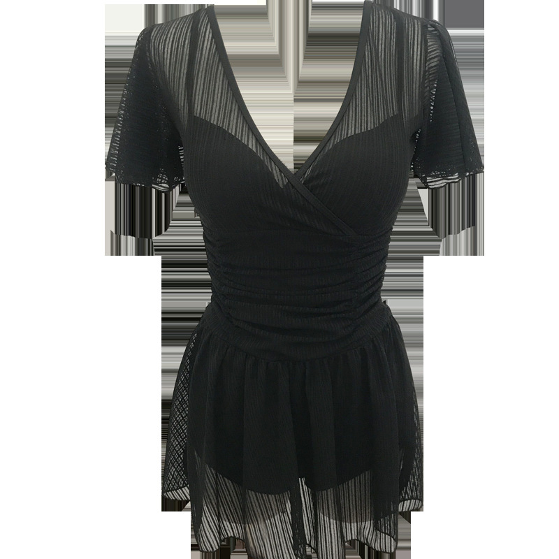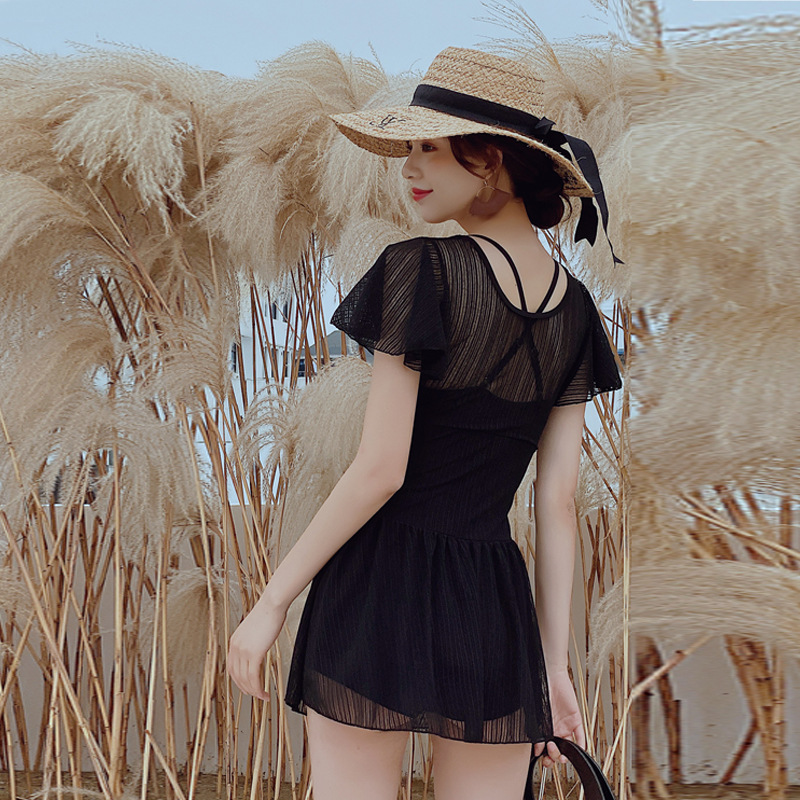 South Korean swimwear women's fairy Fan conservative small breasts gather for a slim dress style even body spa holiday swimsuit