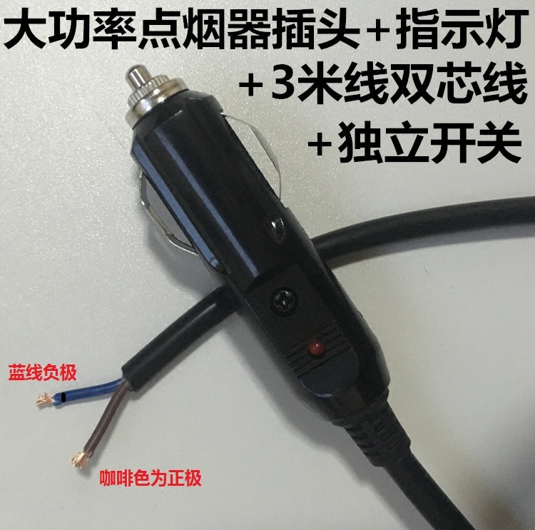 One-speed switch two-core cigarette lighter wire two-speed switch three-core cigarette lighter wire one-speed switch one-to-two dual-core wire battery to cigarette lighter female