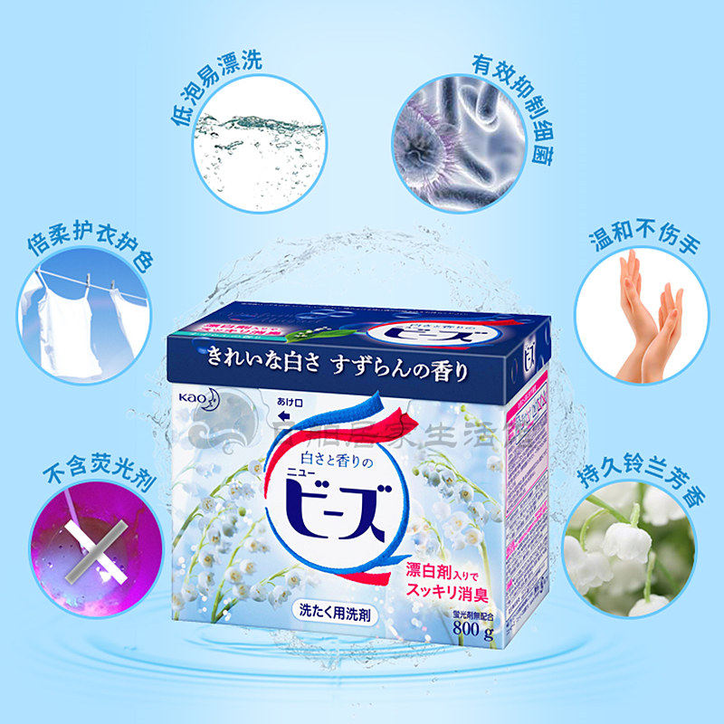 Japan Import Flowers King color Net white enzyme Suzulan fragrance washing powder 800g Johan Qingshuang No Luciferno