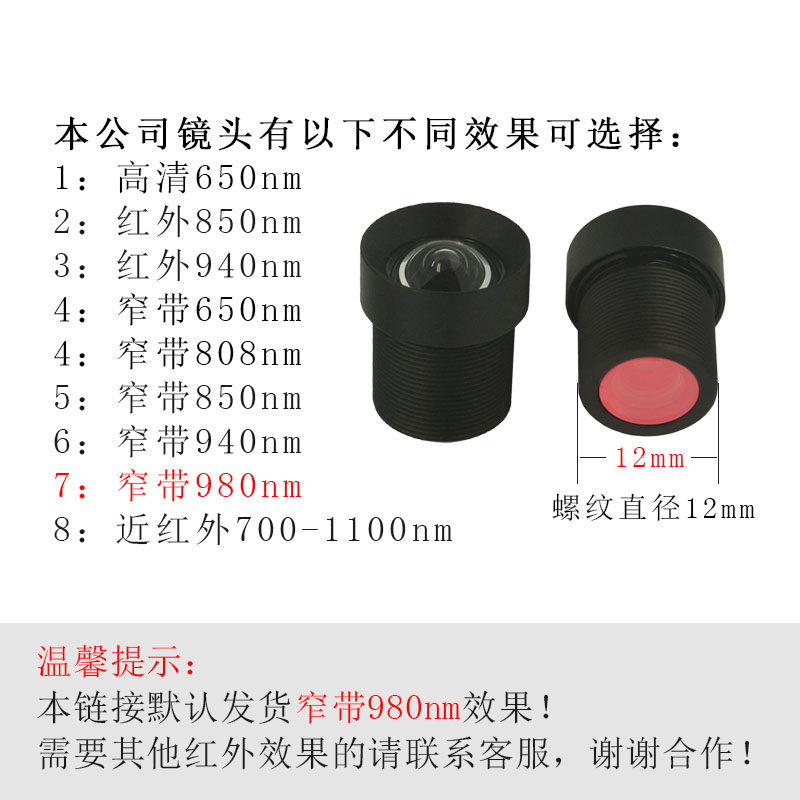 M12mm no distortion without deformation pure near infrared narrow-band 980 fisheye panoramic wide-angle monitor industrial short lens