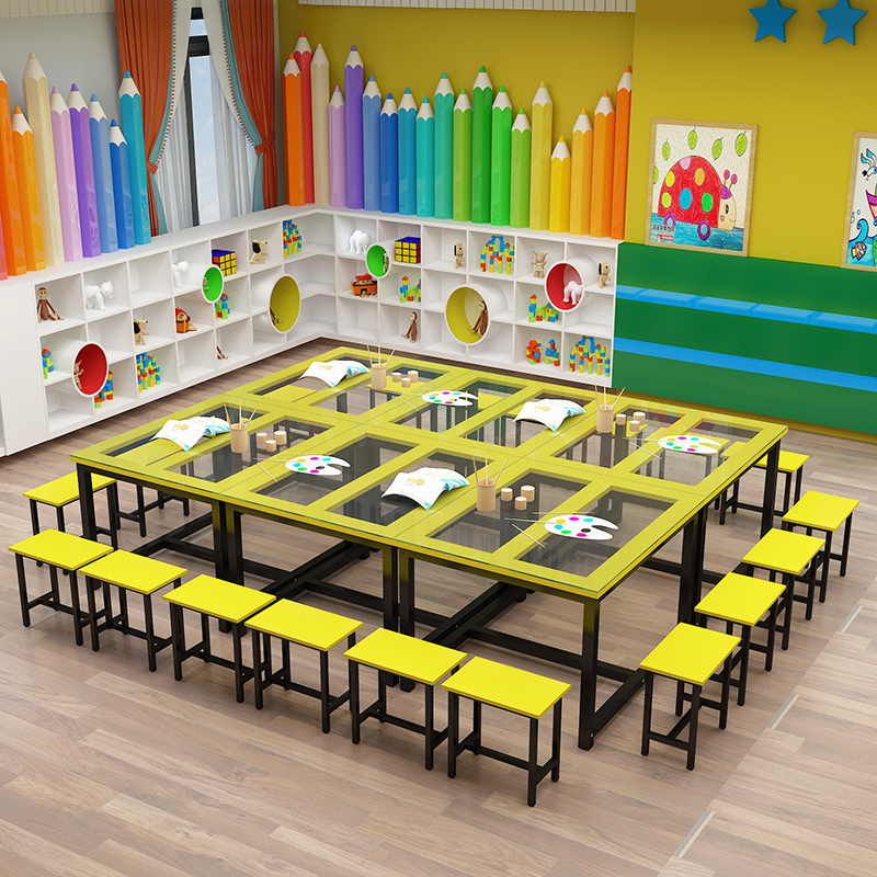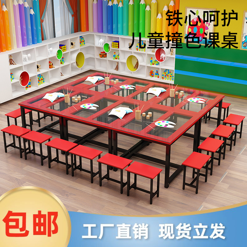 Children's studio table and chair combination kindergarten splicing art table painting table tutorial class training desk learning table