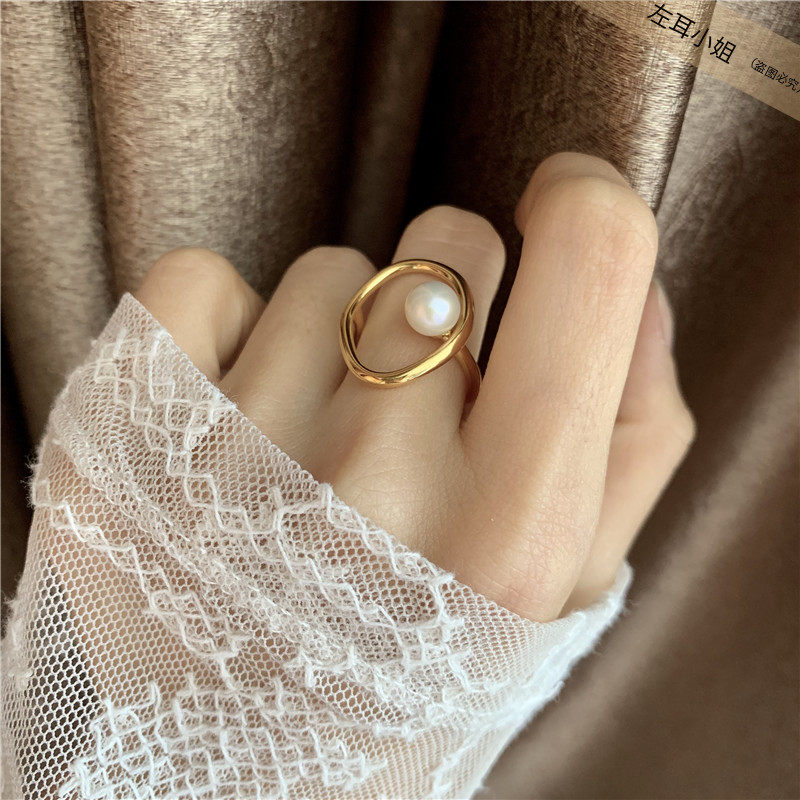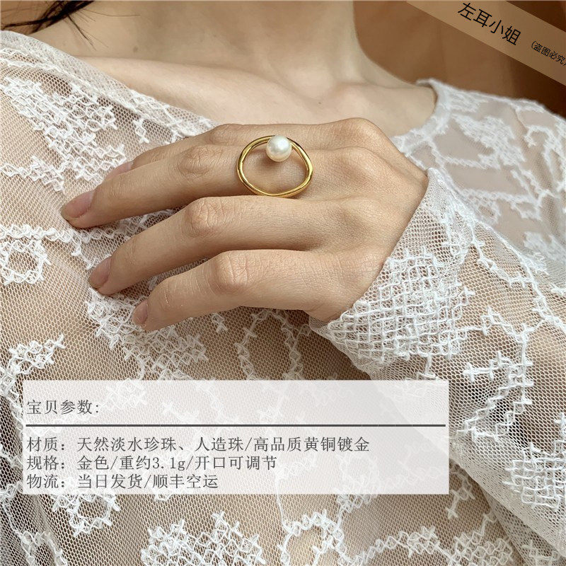 Natural Freshwater Pearl Ring Female Niche Design Personality Minimalist Ring Light Extravagant Advanced Sensation Index Finger Ring Adjustable