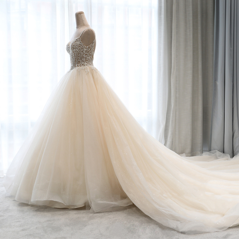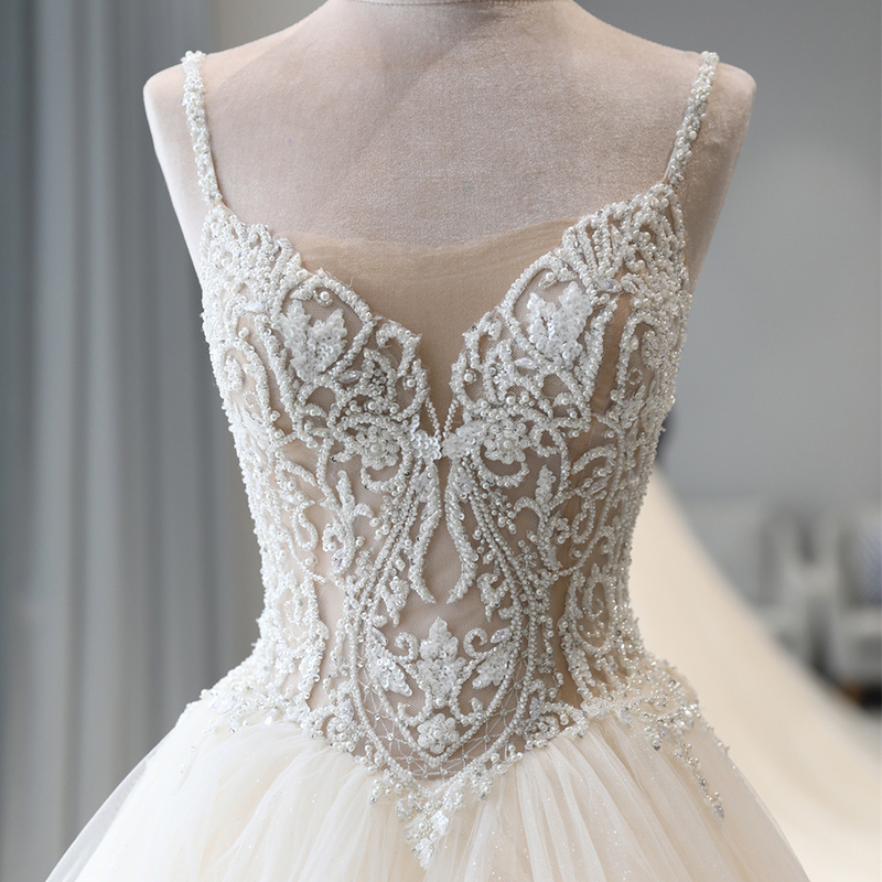 Light main wedding gown 2022 new bridal style minimalist harness small sub starry sky small crowns summer long trailing