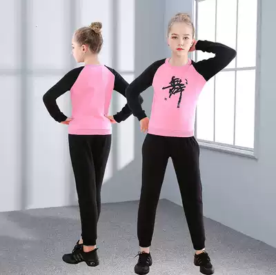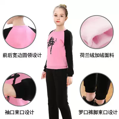 Children's dance girls autumn and winter practice clothes thick suit boys plus velvet long sleeve Chinese dance costume Latin dance